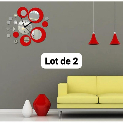 - Horloges murales 3D en forme miroir acrylique large de couleurs rouges très joli répondant aux déco des maisons chambres bureaux espaces familials etc..